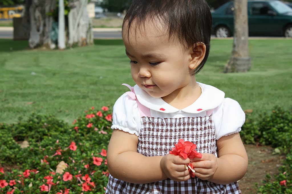 小孩子都愛大自然的一切,看見滿園的鮮花,她說:"摘!摘!"